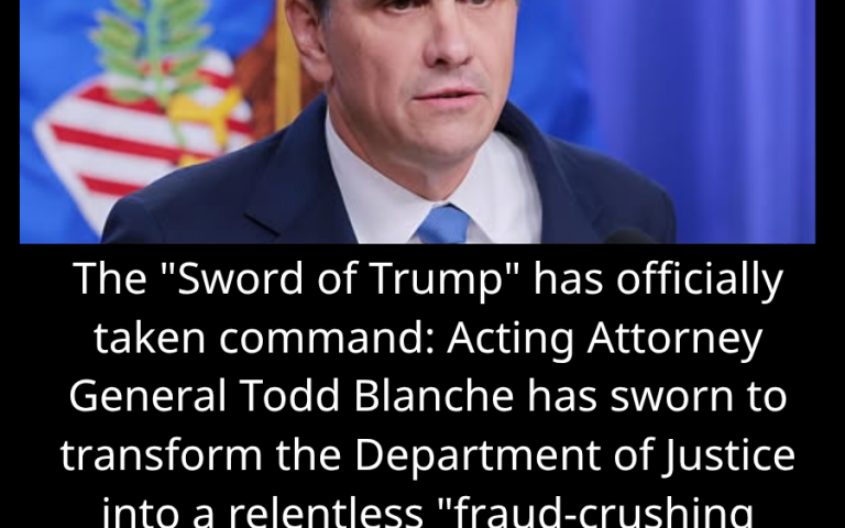 The “Sword of Trump” has officially taken command: Acting Attorney General Todd Blanche has sworn to transform the Department of Justice into a relentless “fraud-crushing machine,”
