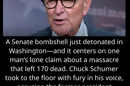 A Senate bombshell just detonated in Washington—and it centers on one man’s lone claim about a massacre that left 170 dead. Chuck Schumer took to the floor with fury in his voice, accusing the former president