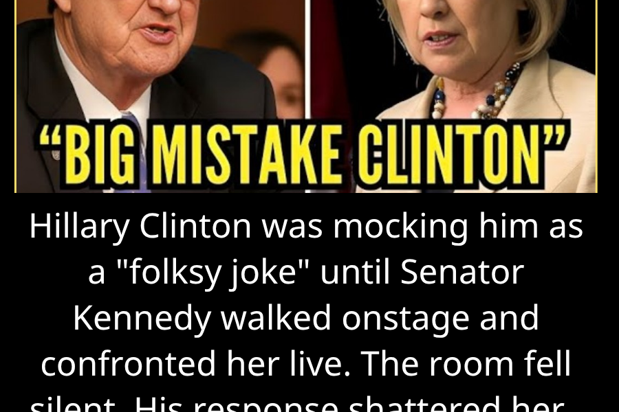 Clintonâs smile flickered. She covered it with a nervous chuckle as Kennedy reached the steps, nodded politely to security, and climbed up. He didnât grab the microphone. He didnât rush. He simply looked at Clinton, gave a slight nod, and waited.