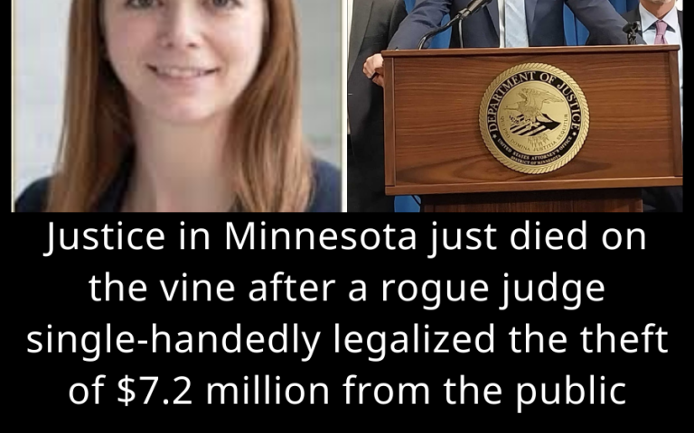 Justice in Minnesota just died on the vine after a rogue judge single-handedly legalized the theft of $7.2 million from the public purse.