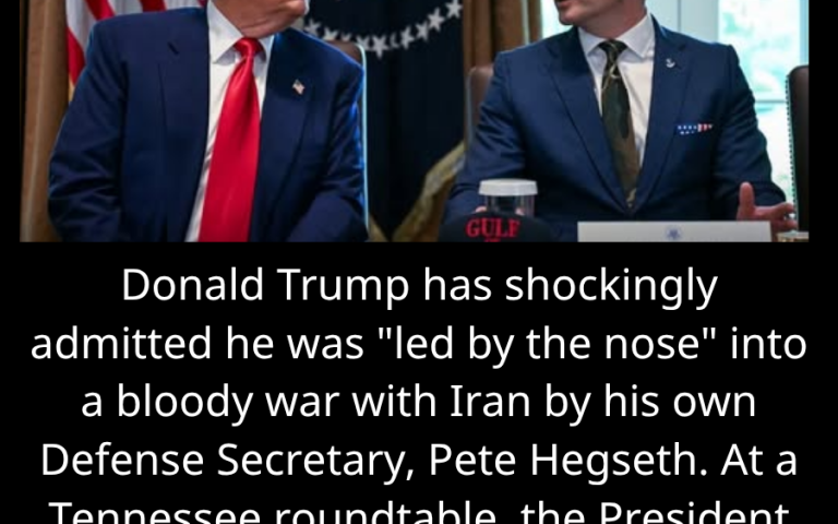 Donald Trump has shockingly admitted he was “led by the nose” into a bloody war with Iran by his own Defense Secretary, Pete Hegseth. At a Tennessee roundtable, the President deflected all blame