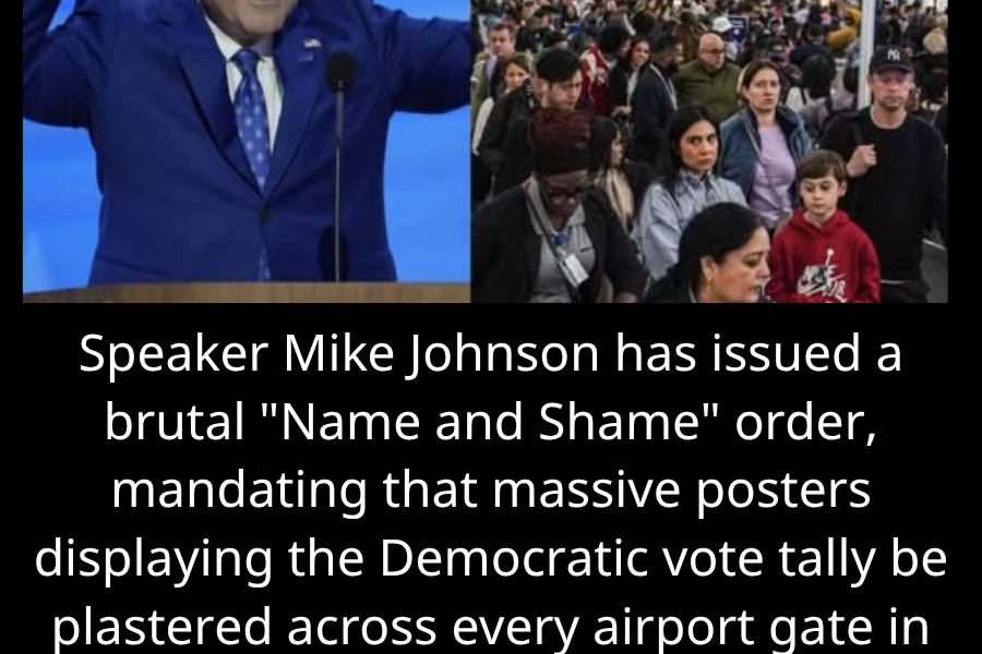 Speaker Mike Johnson wants to put that poster in every airport in America. He wants the people standing in the lines to know, without spin, without cable news interpretation, without press releases, exactly who caused the line they’re standing in.