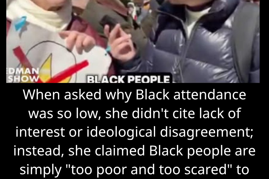 When asked why Black attendance was so low, she didn’t cite lack of interest or ideological disagreement; instead, she claimed Black people are simply “too poor and too scared” to show up